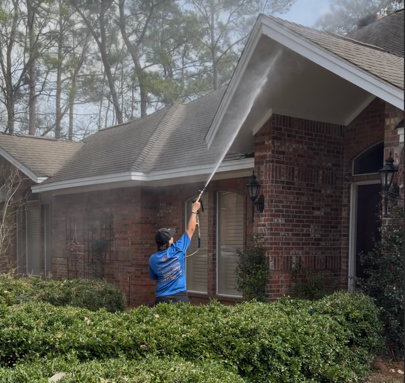 For more delicate surfaces, our soft wash method uses low-pressure water combined with eco-friendly cleaning solutions to gently clean siding, fences, and other exterior surfaces.